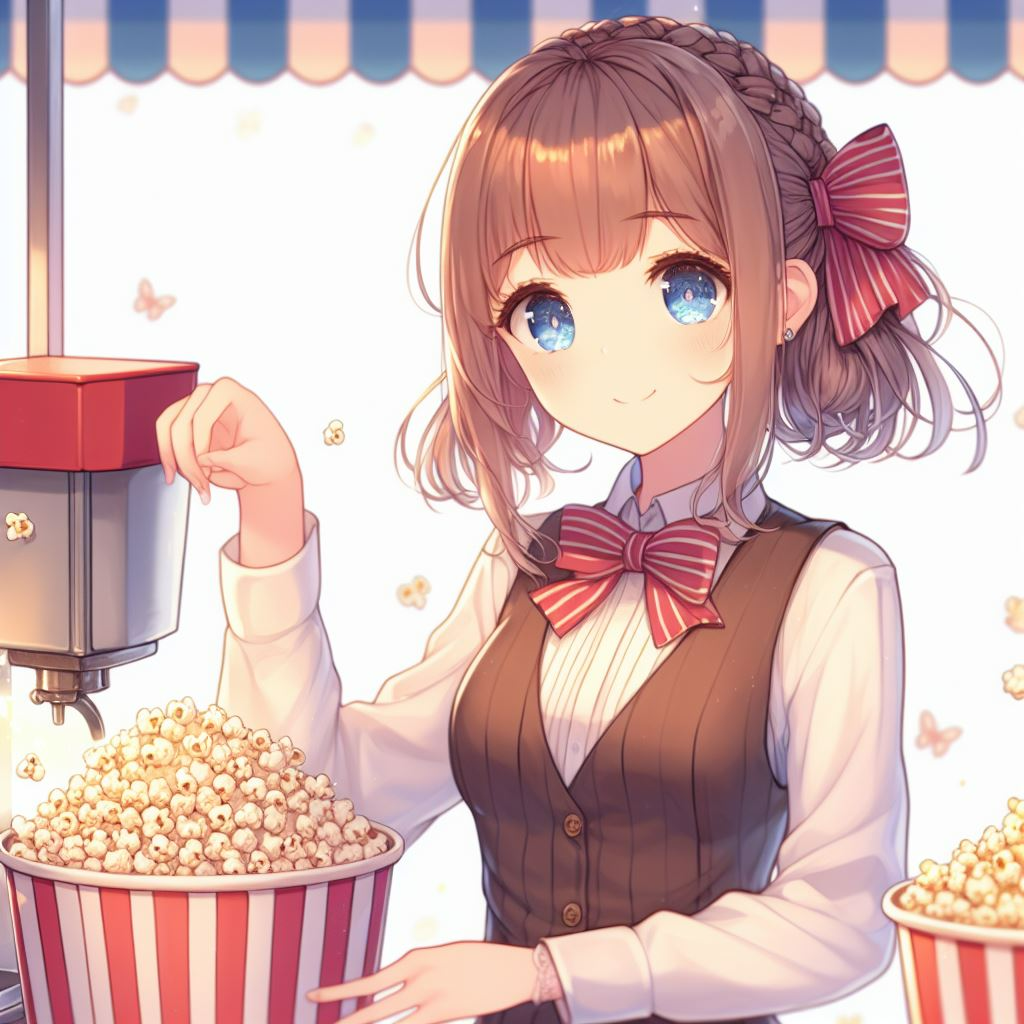 A supernatural being that appears anywhere with conflict or chaos and sells popcorns.