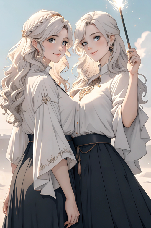 By yaethi Aino and Anni are scions of House Lumi, renowned for their elegant demeanor, noble lineage and affinity with ice magic. Their synchronized lifestyle is an extension of the inextricable bond between them, an eerie phenomenon that garners fascination...