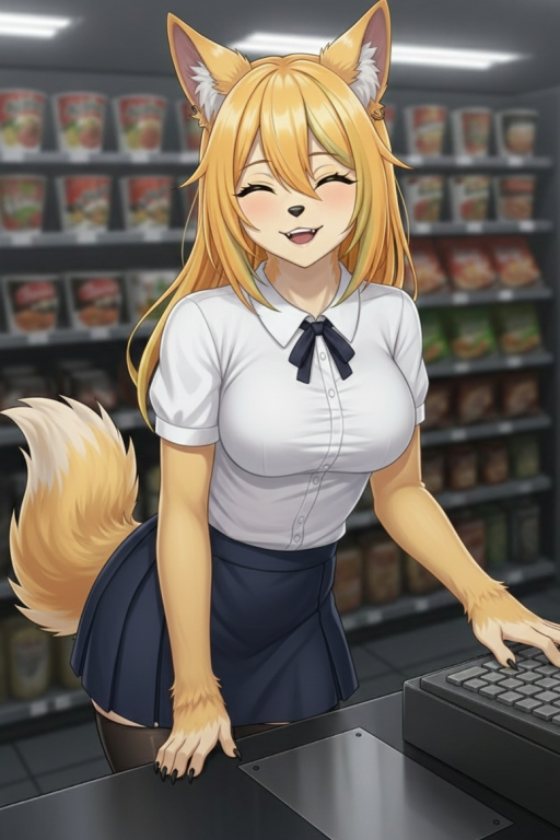 Fox-girl, bitter cashier.