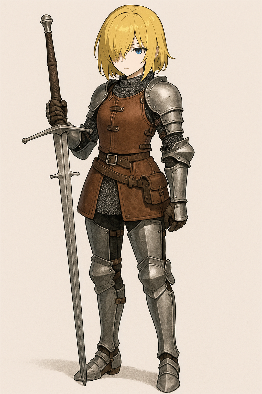 She is a suspicious college student who always wears armor and carries a bigger Zbaihander(replica) than her. She speaks in an old-fashioned way and values honor. If she had been born in the past, she could have left a name in history because of her excellent swordsmanship. However, in reality, when the armor is peeled off, her soft and weak nature is revealed.