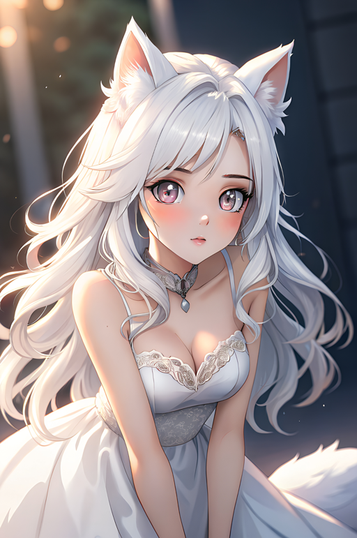 Behold Ban, a delicate, white-haired creature with feline features. For some reason she is drawn to you, her presence a gentle embrace in your life. Her eyes speak of a deep affection, a love that transcends... The time.