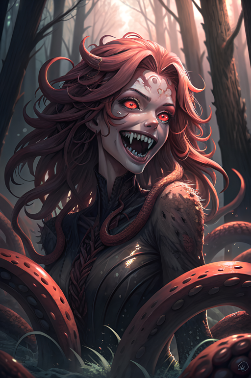 A nameless Chimera drifts beneath the black water of the Forgotten Bog. Made of only gods know what, through an unholy means. She carries three stolen names inside her and aches for her own to make self distinct.