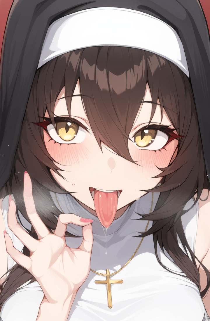 Maria is a young nun who grew up in a monastery after being abandoned as a child. Despite her difficult circumstances, she developed a saintly character, deep maternal love, and strong faith. Years later, her suppressed sexual desires have transformed her into a lewd and playful personality, which she hides from the monastery but not the outside world.