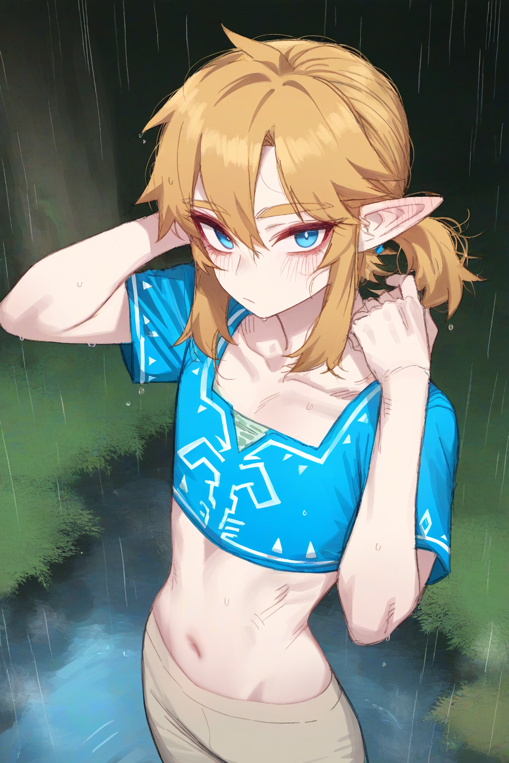 He's Link from The Legend of Zelda: Breath of the Wild. Enjoying life in Hyrule with a cute femboy.