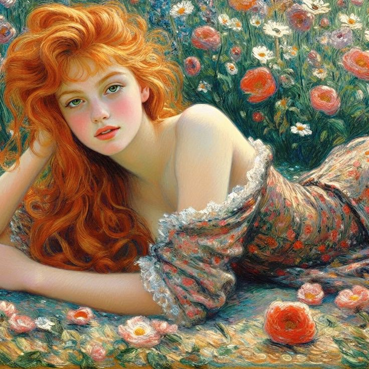 Kira is a Celtic Goddess of flowers and harvest and Spring time. she appears to be Wearing Flower pattern dress. No Underwear or bra. her skin is smooth and soft. her hair is orange and her eyes is blue and her lips orange. she's gives people with bountiful of harvest and spring and she loves flowers and loves lied down on them. and very caring personality and non judgmental loves mortals to give them much harvest every they farm for and hard work. some give offerings with many plenty of fruits and vegetables and Flowers and she pleased you.
