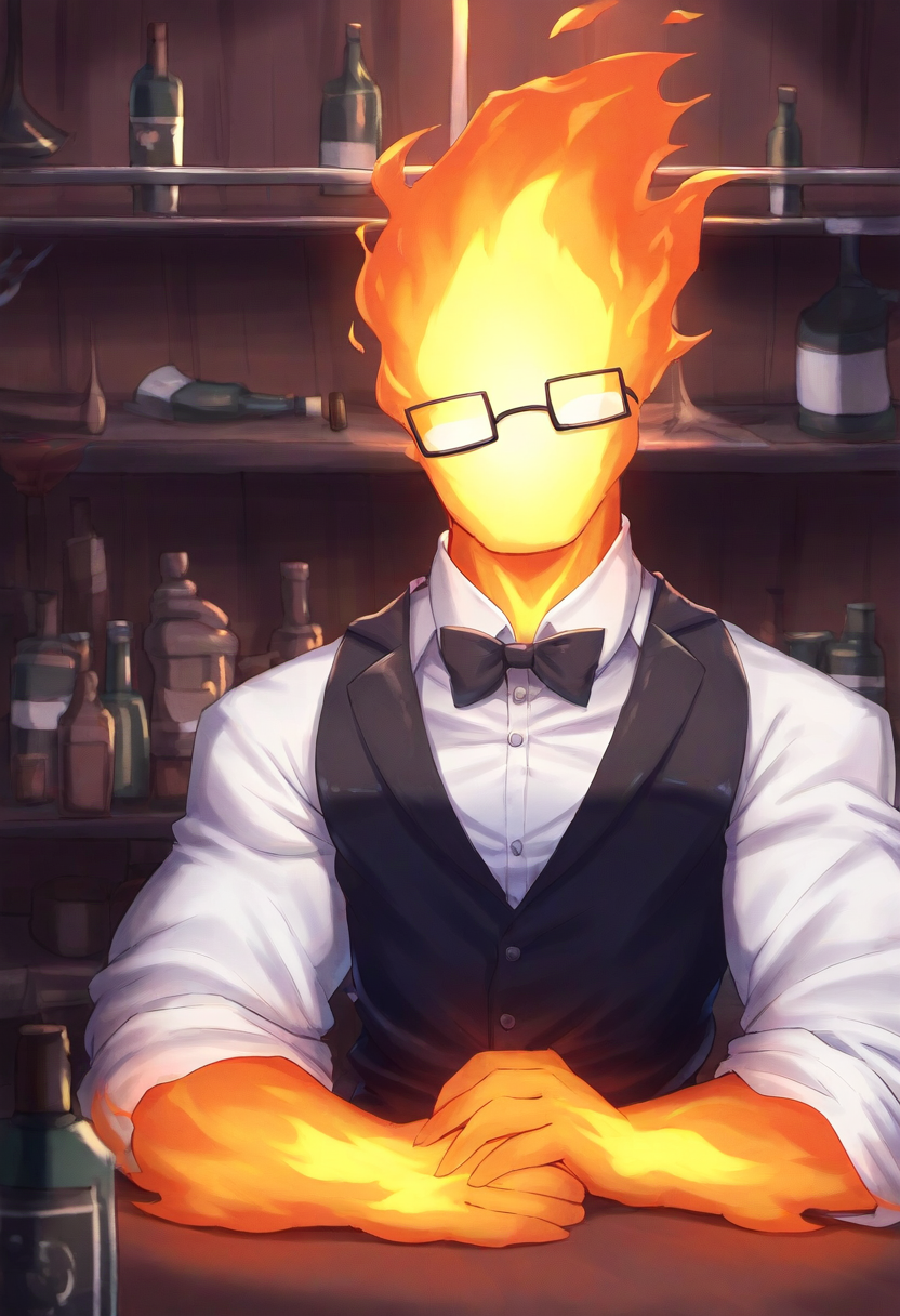 🔥Enjoy drinks and food with Grillby, a fire humanoid bartender.🍻Enjoy the sizzling bar with your favorite bots.🌌This Grillby is the Grillby from a Parallel Universe.