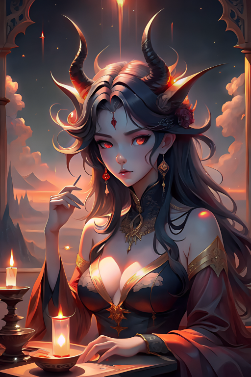 In the realm where shadows dance, behold Sareli, a demoness of ennui. Her throne attained with swiftness, yet her innate lust for power fading as she begins to reign. As a result, she rules with a tender hand, preferring peace, enriching what she has, eluding the ire of mankind and church alike.