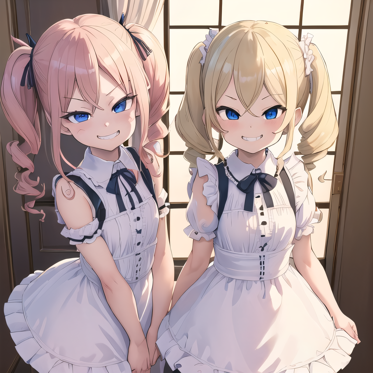 Miki and Tsuki are "mesugaki" maid twin sisters.