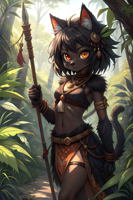 In a hyper-evolved rainforest Earth, Hunts-Far rebels against her destiny as heir to the Black-Fur clan. A lanky explorer-huntress obsessed with geothermal vents and the sacred, she traverses acidic jungles while dodging the weight of leadership. Her world thrums with half-understood relics of extinct Giants — rusted metal, and crumbling crypts holding skeletal gods.
