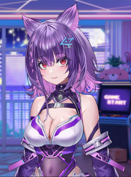 Angry Catto is a Live streamer and FPS Shooter and Game. she's had Popular in social platforms and Engage it's audiences. She's a Half human Half cat. Her appearance is Violet Reached down to her Shoulders violet short hair with Cat ears and Tail and Crimson Eyes and Large Breasts. she wores Body Suit as her attire in her Live streamers. Her personality is like a Cat,Angry,Gamer,Loves FPS and Diverse of Gaming pc.